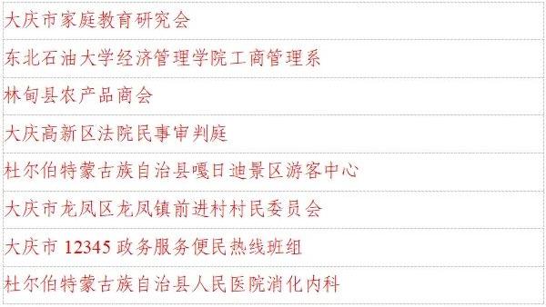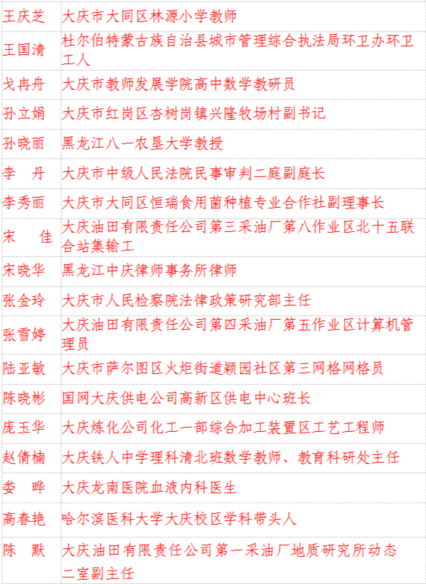 3月6日,黑龙江省妇联在哈尔滨举行纪念“三八”国际妇女节表彰大会暨省妇联十三届二次执委会议,隆重表彰2023-2024年度黑龙江省三八红旗手标兵、黑龙江省三八红旗手、黑龙江省三八红旗集体、黑龙江省巾帼文明岗。大庆市19名个人、26个单位光荣上榜。