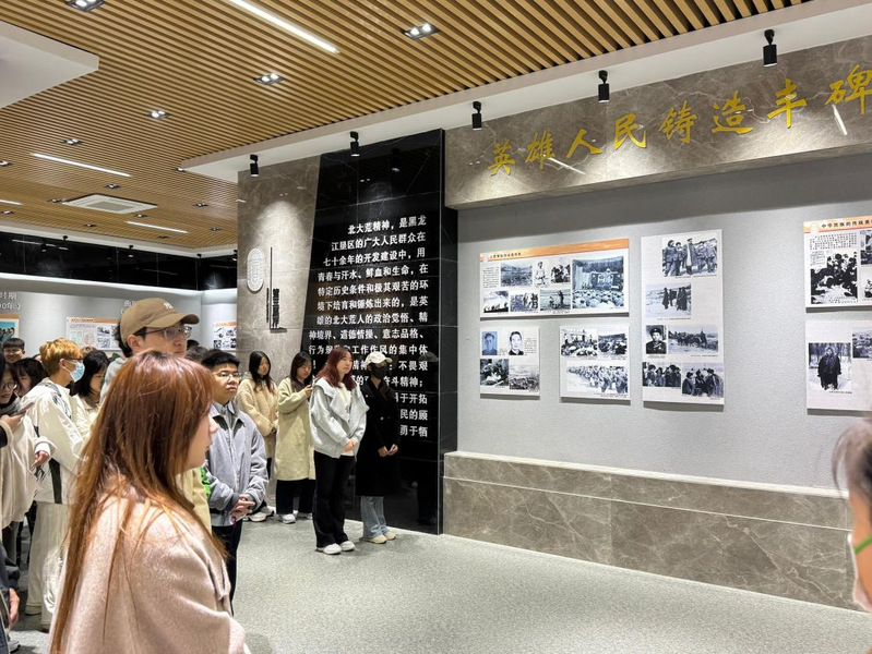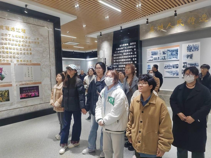展示馆内,通过讲解员的介绍,全体师生从序厅开始就感受到了北大荒人“自力更生、艰苦创业、勇于开拓、甘于奉献”的精神图谱。同学们跟随讲解员的脚步,一路追寻北大荒的开发足迹,见证亘古荒原变粮仓奇迹,感悟英雄人民铸就精神丰碑,传承红色基因书写时代新篇。植物保护党支部党员教师结合植保专业实践课程内容,引导员工思考如何在新时代传承北大荒精神、践行植保使命。参观结束后,员工代表感慨:“当看到先辈们用双手改天换地的历程,才真正理解‘脚踏实地’的分量,这堂课让专业学习有了精神底色。”