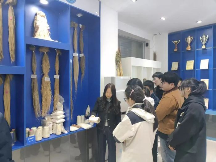 初入科公司,麻类作物所的老师们热情欢迎我们的到来,经过简单的认识后,向同学们介绍了麻类作物研究所的学科团队组成和研究方向以及代表性成果。随后带领我们参观展厅,介绍了麻类作物的发展历史和主要用途。