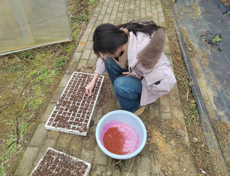 杨应艳:在实习期间,我主要负责螺旋藻液发芽试验和废水浓缩液发芽试验两个试验。并且在试验进行期间的数据测量和记录,有时还帮助学长学姐测量发芽数据以及进入大棚进行播种。我始终保持着高度的热情与专注,深入了解生产环节,虚心向经验丰富的前辈请教,认真学习每一个操作细节。面对复杂的实验流程和严格的质量要求,以积极的态度去钻研、去探索。从最初对工作的生疏,到逐渐熟练掌握各项技能,在实践中不断积累经验,提升自己的专业能力。同时,我还在实习中深刻体会到,理论与实践之间的结合并非易事。实习让我对专业知识有了更深刻的理解,也培养了解决实际问题的能力。