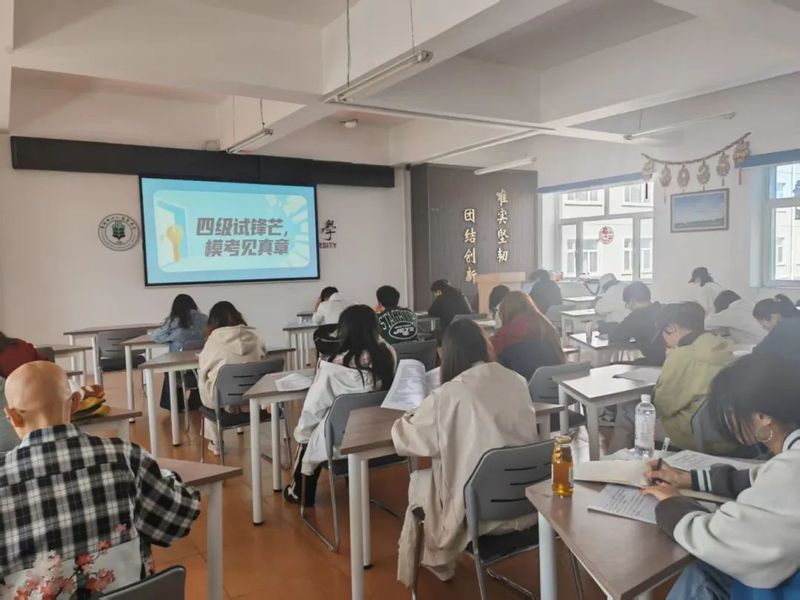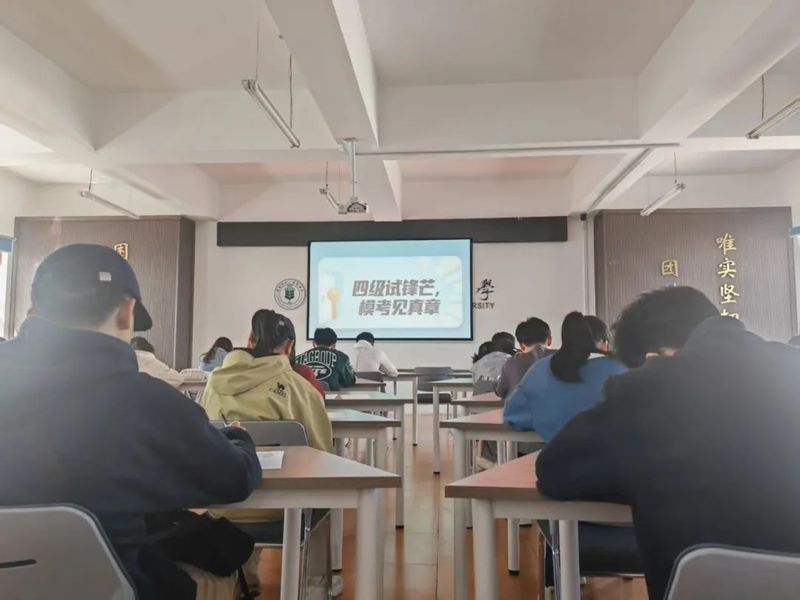本次活动严格遵循全国大学英语四级考试(CET-4)的标准化流程,于早上9:00准时开考。考试全程历时2小时,包含写作、听力理解、阅读理解和翻译四个考核模块。考场布置有序,并配备听力播放设备,为考生营造了高度仿真的考试环境。