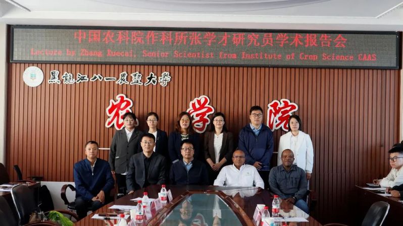 9月12-13日,国际玉米小麦改良中心(CIMMYT)全球玉米项目部3位玉米育种家Felix San Vicente、Thanda Dhliwayo、张学才和黑龙江省农科院玉米研究所专家杨剑飞应邀来公司进行学术交流。CIMMYT玉米分子育种实验室主任、中国农科院作科所张学才研究员做客u8国际网站新农科讲坛,为师生作题为《全球热带玉米种质创新及CIMMYT玉米联合实验室的合作方案》的学术报告。公司玉米学科带头人杨克军教授与专家们进行了会前交流。公司党委书记姜楠对来访的专家表示热烈欢迎,u8国际平台部分老师及研究生参加学术交流会。
