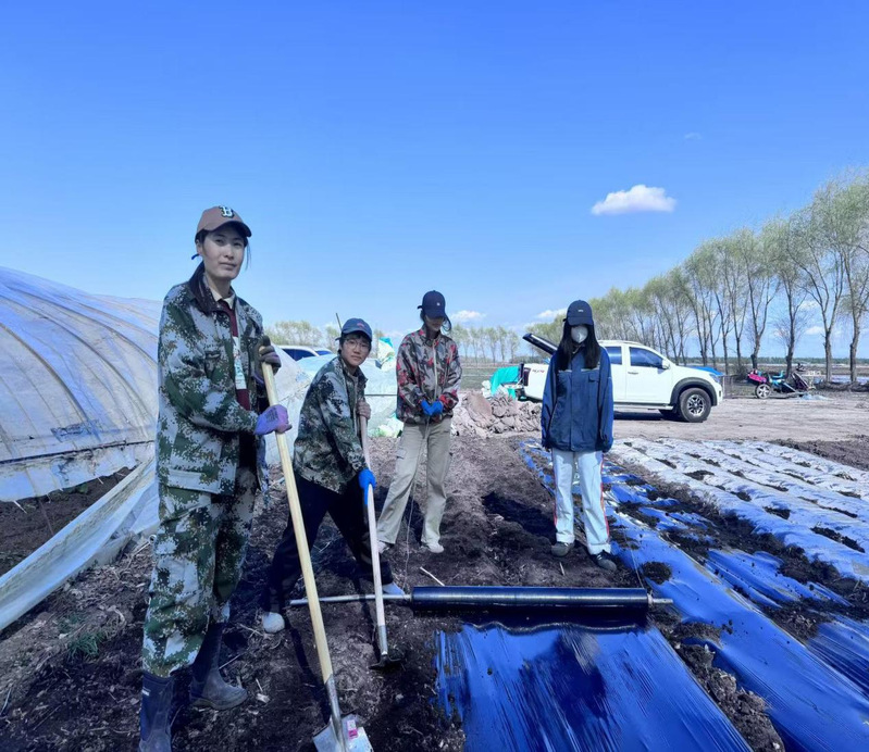 在前锋农场农业科技服务中心技术员张岩老师的带领下,我们队农业发展部和科技技术服务中心的韩秋阳,尹双双,王钰童等四名女生学习了温室地膜覆盖技术的基本原则和方法,了解不同生长阶段对水分的需求,学习并掌握膜下灌溉技术与温室大棚的管理技术,了解其工作原理和维护方法。