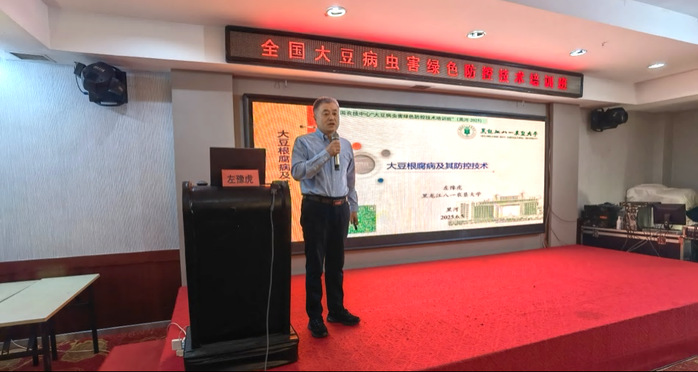 培训班上,u8国际平台植物保护学科带头人、黑龙江省作物有害生物互作生物学及生态防控重点实验室主任左豫虎教授就“大豆根腐病及其防控技术”向大会作专题报告。