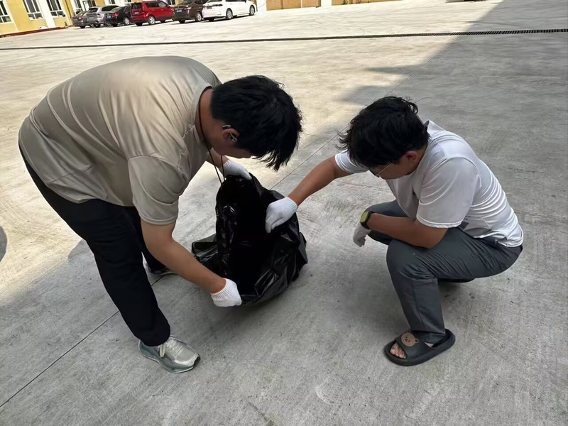 活动中,王勃老师向志愿者们强调了劳动教育的重要意义,明确分组分工与清扫标准,要求全体人员秉持“不放过一处污渍、不遗漏一片垃圾”的原则,对公司周边环境进行彻底清洁。志愿者们迅速行动,手持扫帚、垃圾袋、抹布等工具,有序开展清扫作业。劳动过程中,全体志愿者不畏高温酷暑,相互配合、协同作战,不仅展现出高度的责任感与团队协作意识,更以实际行动践行 “奉献、友爱、互助、进步” 的志愿精神。经过近 4 小时的集中清扫,公司内外地面整洁度显著提升,公共设施焕然一新,绿化带杂物得到彻底清理,整体环境面貌焕然一新。