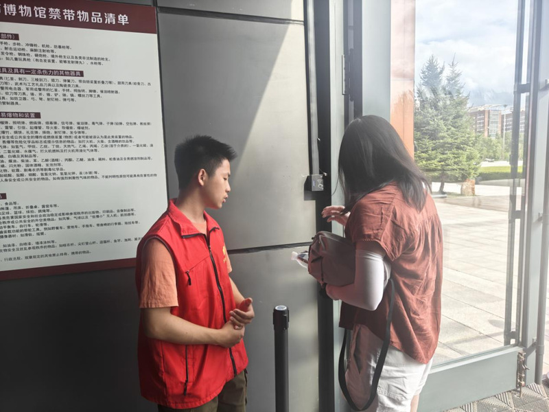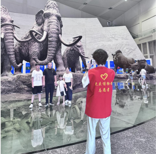 在近2个月的服务中,志愿者们分工明确、协同协作,成为博物馆里一道亮丽的“青春风景线”。在安检区域,他们坚守岗位、细致核查,严格协助工作人员做好游客物品检查工作,用认真负责的态度筑牢场馆安全防线,保障了场馆秩序与游客安全;在展厅内外,他们化身“文明引导员”,耐心提醒游客遵守参观规则,引导人流有序移动,及时劝阻不文明行为,助力营造安静、有序的参观环境;面对游客的咨询需求,志愿者们总能热情回应,不仅为有需要的游客提供路线指引、拍照协助等基础服务,还主动分享展品背后的红色故事,从大庆油田开发历程中的奋斗事迹,到东北抗联时期的革命壮举,用生动的讲述让红色历史“活”起来,累计为游客提供讲解服务100余次,得到了游客们的广泛称赞。