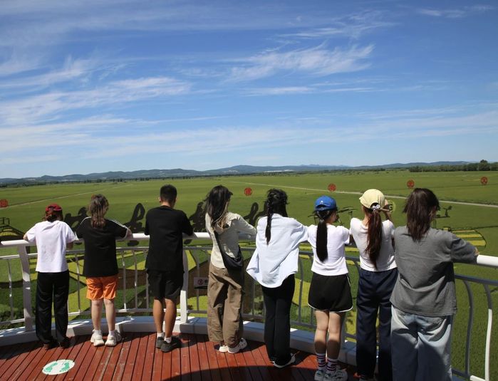 年轻学子们托着下巴静静聆听,清澈的眼眸中倒映着两个时代的剪影:一边是老人记忆里跳动的篝火与沉重的垦荒犁,一边是远处智能育秧基地闪烁的电子屏与无人机划过的银线。夕阳西下,新老两代人的影子在长廊地面上渐渐交融,化作乡村振兴路上最动人的风景。她握着一位队员的手轻声说:“土地不会辜负用心待它的人,你们年轻人有文化,一定能让这黑土地更出彩。”