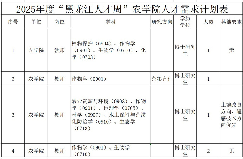 2.黑龙八一农垦大学公开招聘人员信息表
