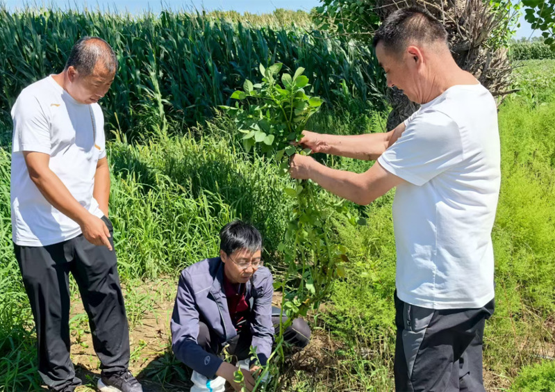 7月9日,作物种质资源创新团队负责人杜吉到带队到黑龙江省鸡西市八五五农场,就双方合作项目开展调研指导工作。在农场科技园区,团队深入田间地头,重点查看了大豆示范品种的生长态势,细致检查植株是否存在杂株、病虫害等问题。针对现场发现的情况,团队结合种植实际,现场分析成因并提出了针对性的解决方案,为大豆作物健康生长提供有力技术支撑。